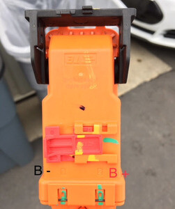 注操作高压组件时,务必佩戴个人防护装备(高压手套、护目镜),测量 B+ 至接地、B- 至接地、B+ 至 B- 的电压;如果电压大于 10V,则说明电池组触点开关未断开或熔焊;停止作业并联系维修工程部
