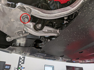 | 将左前下方挠性连杆固定到前副车架的螺栓和螺母 |