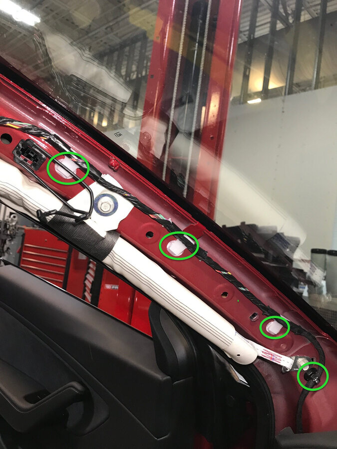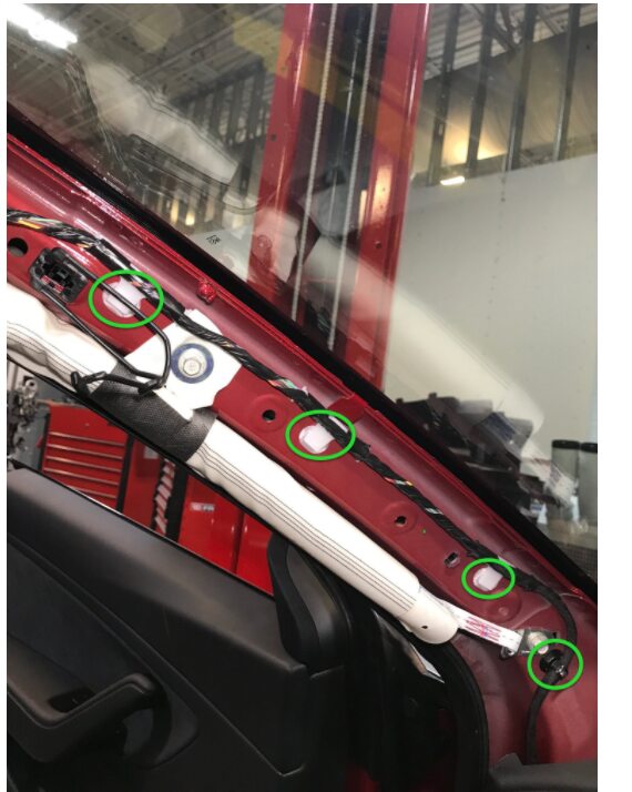 注11x clips, Recommend assistance, Headliner will be partially supported by safety tethers at B-pillars and 2x tether clips at rear corners