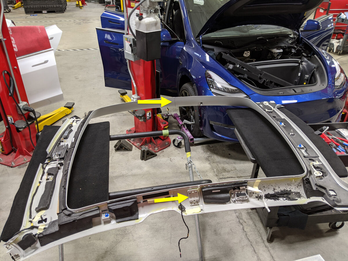 注2x tether clips, Recommend assistance, Remove through rear door, Place headliner on clean surface