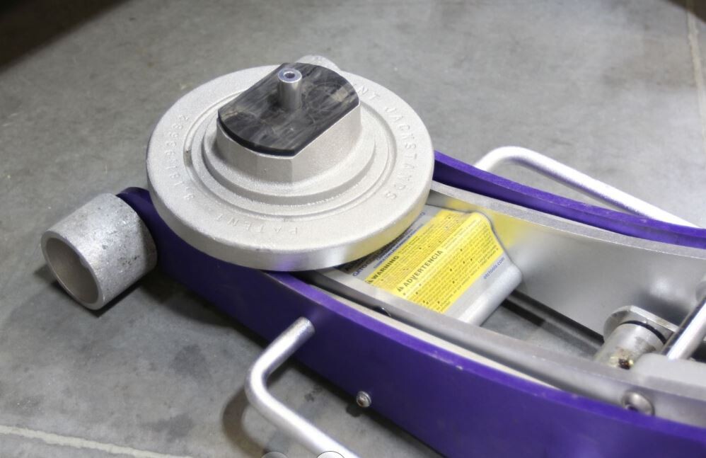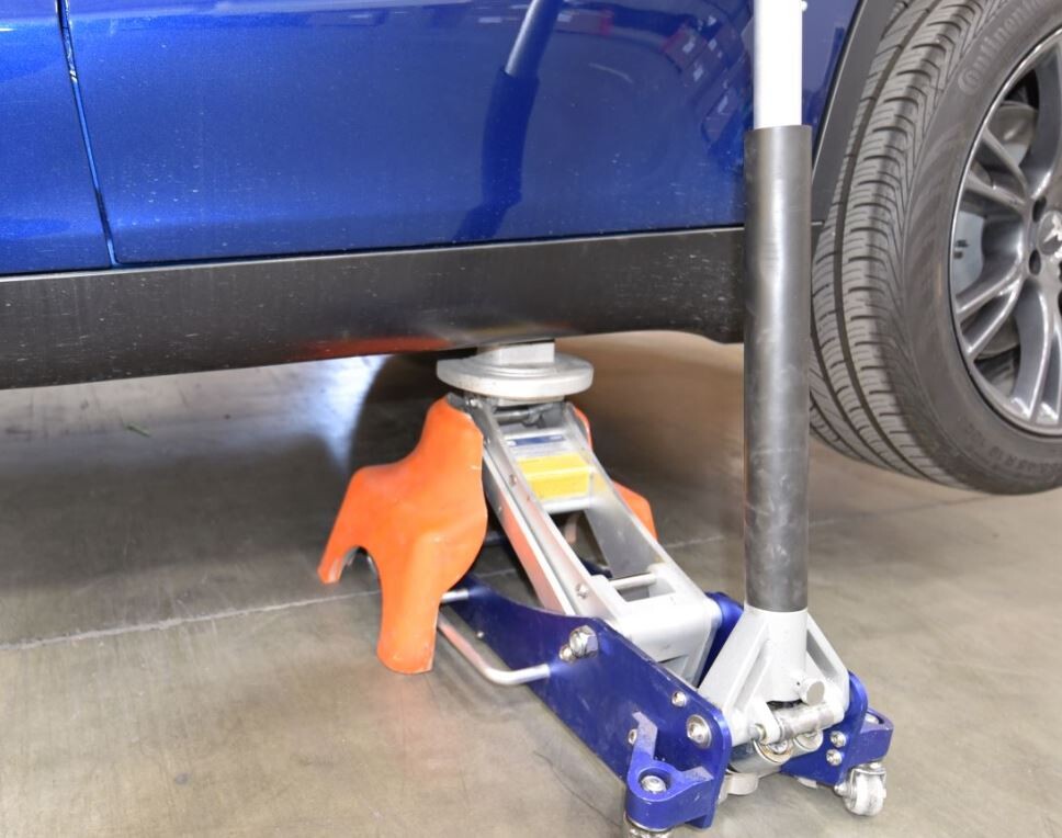 2. 将卧式千斤顶放在千斤顶支架下,然后小心地从千斤顶支架升起车辆。