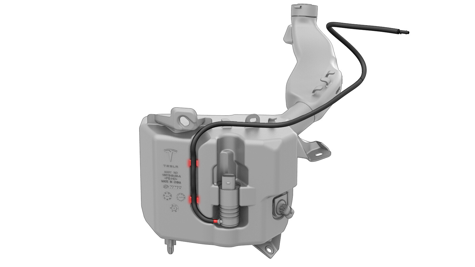 - 将挡风玻璃清洗器软管安装到挡风玻璃清洗器泵和储液罐上。
