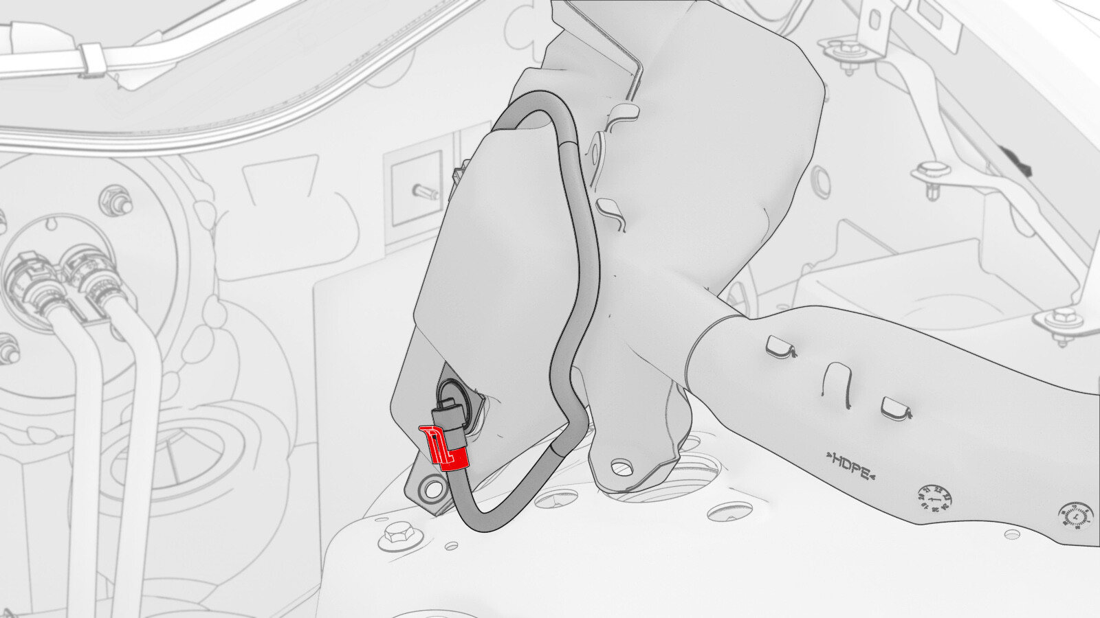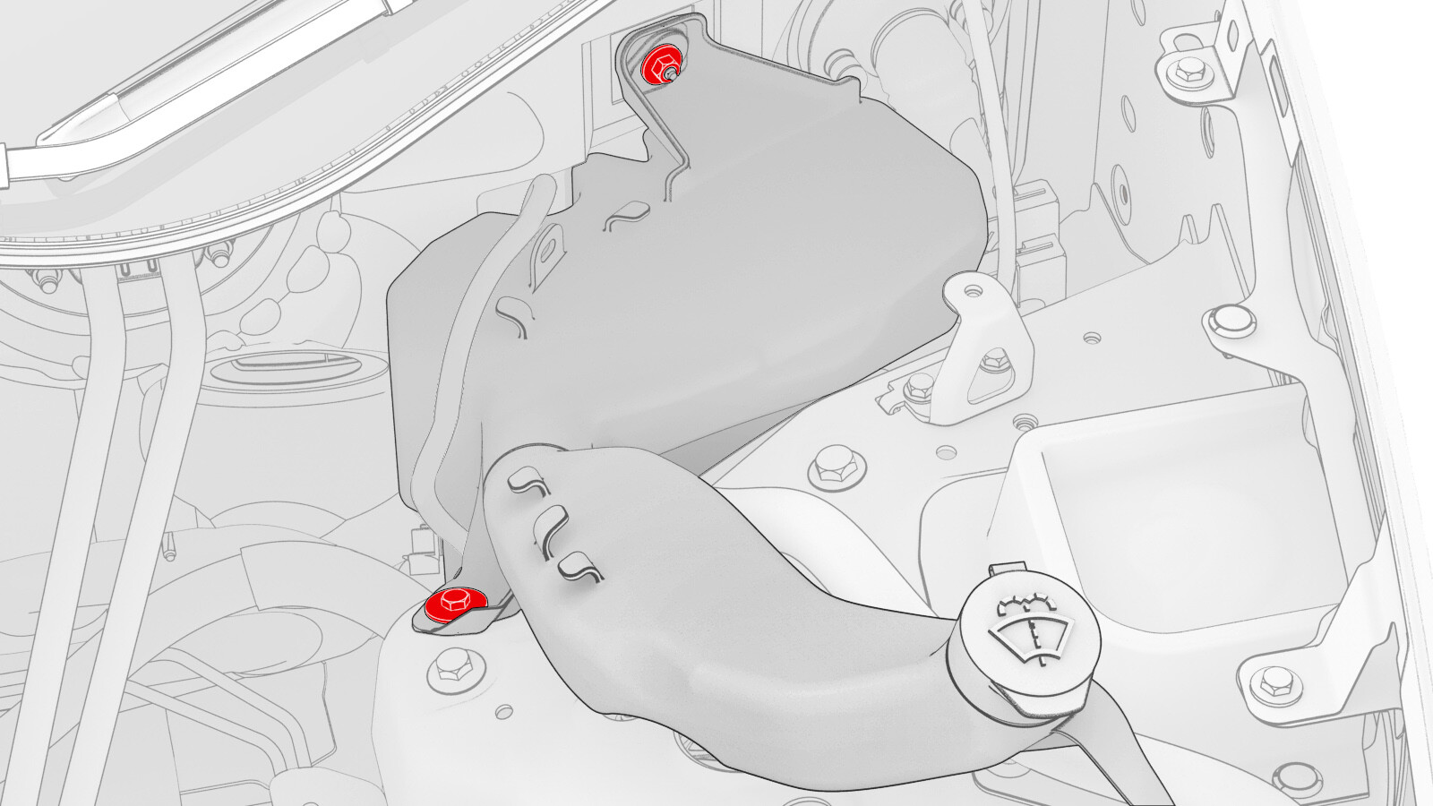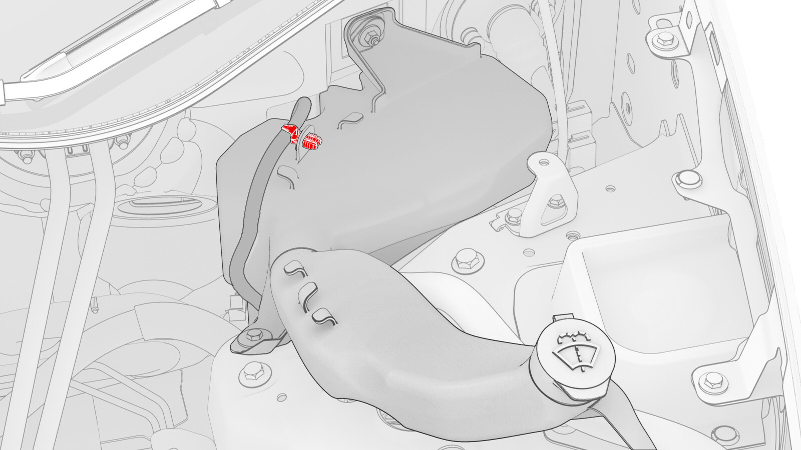- 拧紧将电气线束固定到挡风玻璃清洗器储液罐的夹子。