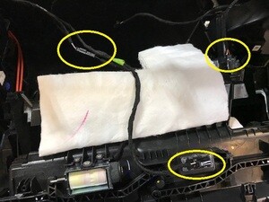 - 取走车载电脑冷却液软管连接点下方的吸收性材料