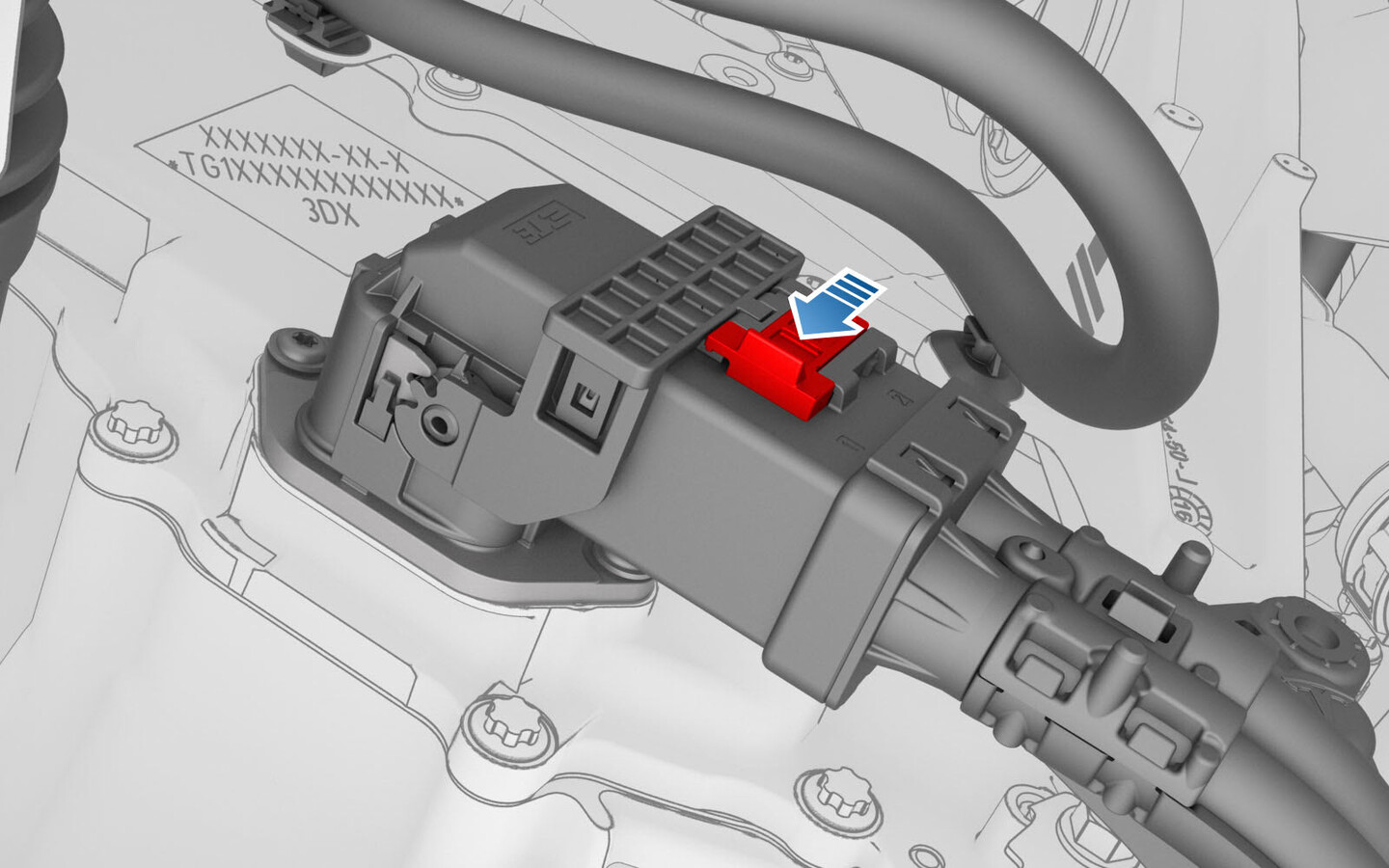 - 滑动释放装置,将前驱动单元高压连接器把手锁定在固定位置。