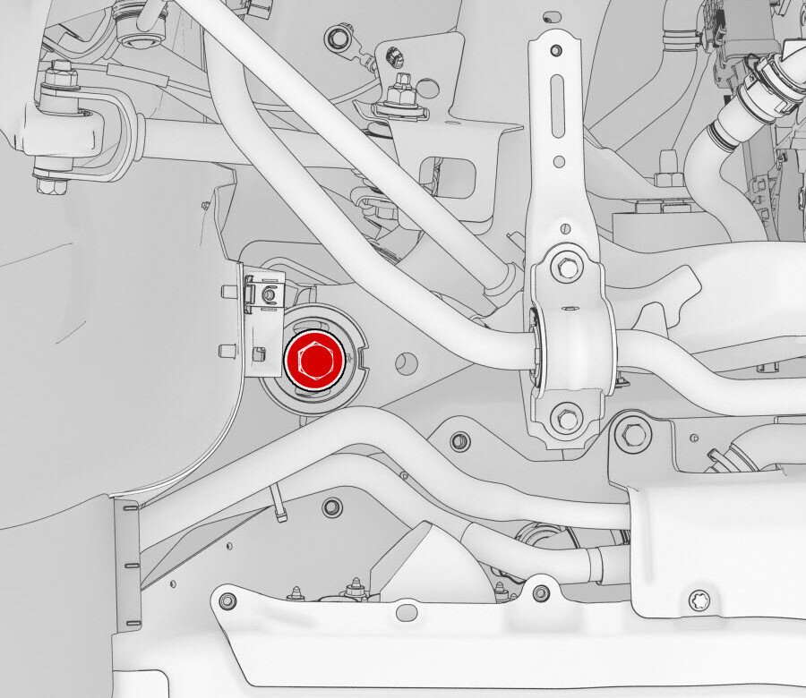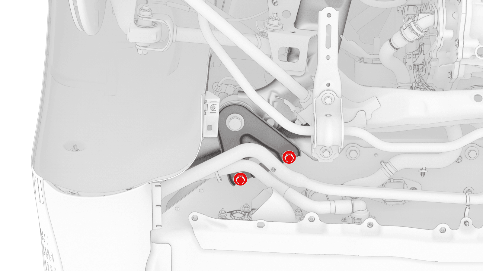 | 将左侧剪力板固定到车身的大号螺栓 |