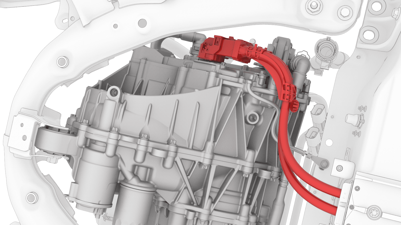 确认前驱动单元高压连接器完全就位,然后比对连接器两侧,确保正确固定到位。