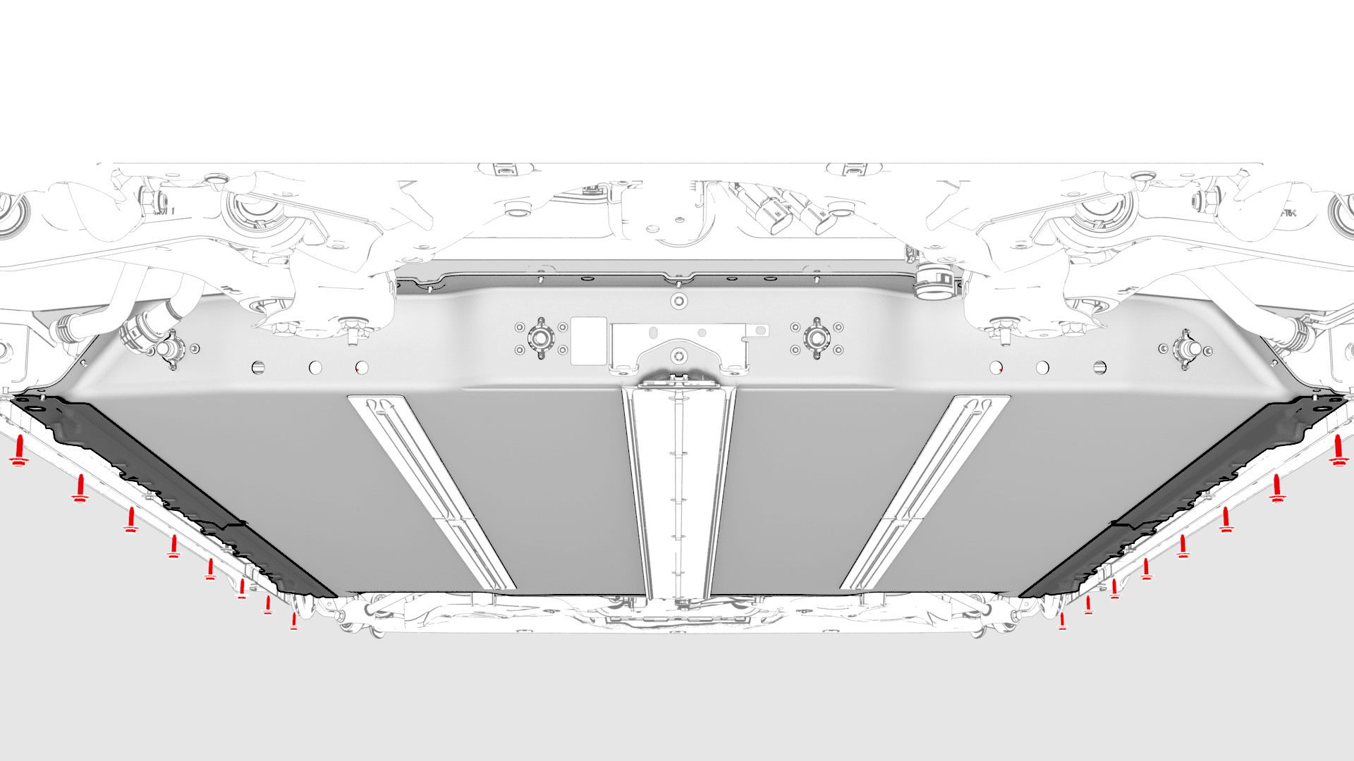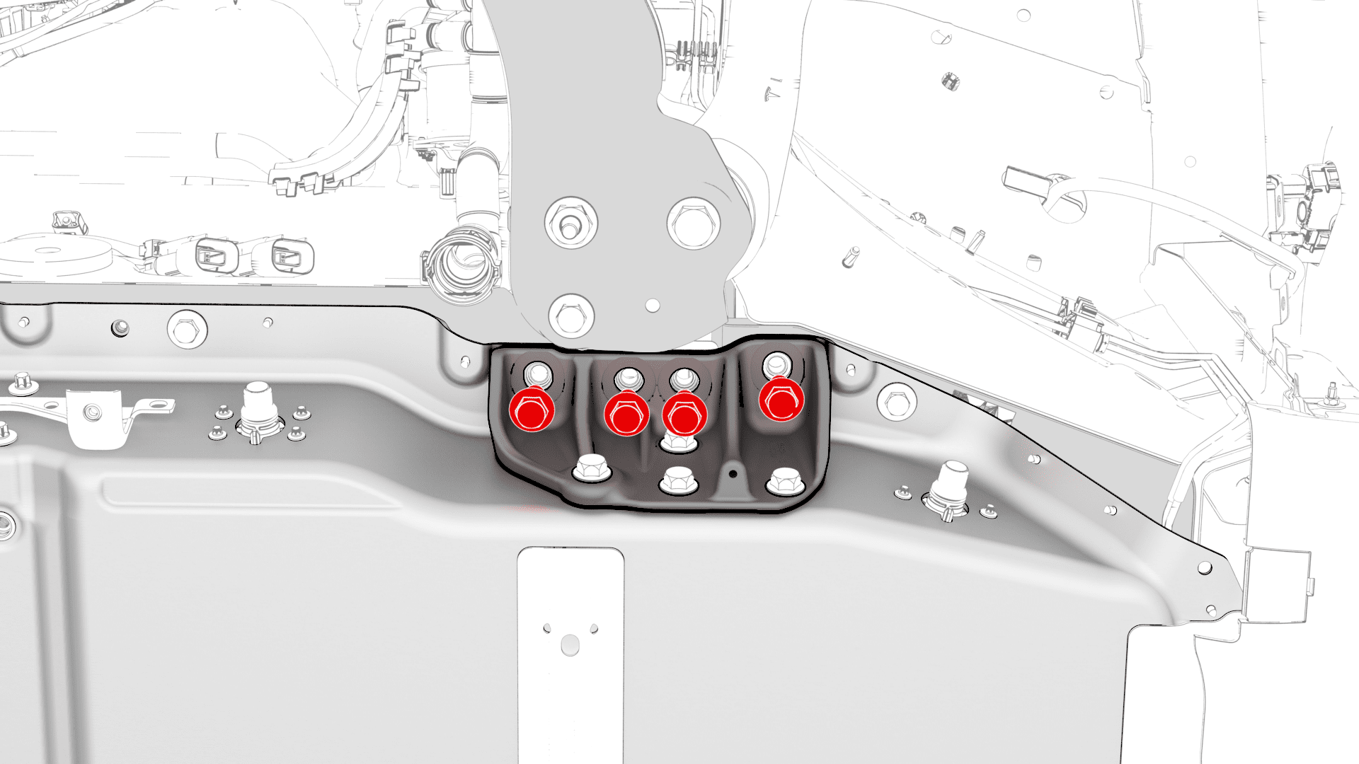 | 穿过高压电池中梁滑板盖固定高压电池的中间螺栓(4 个) |
