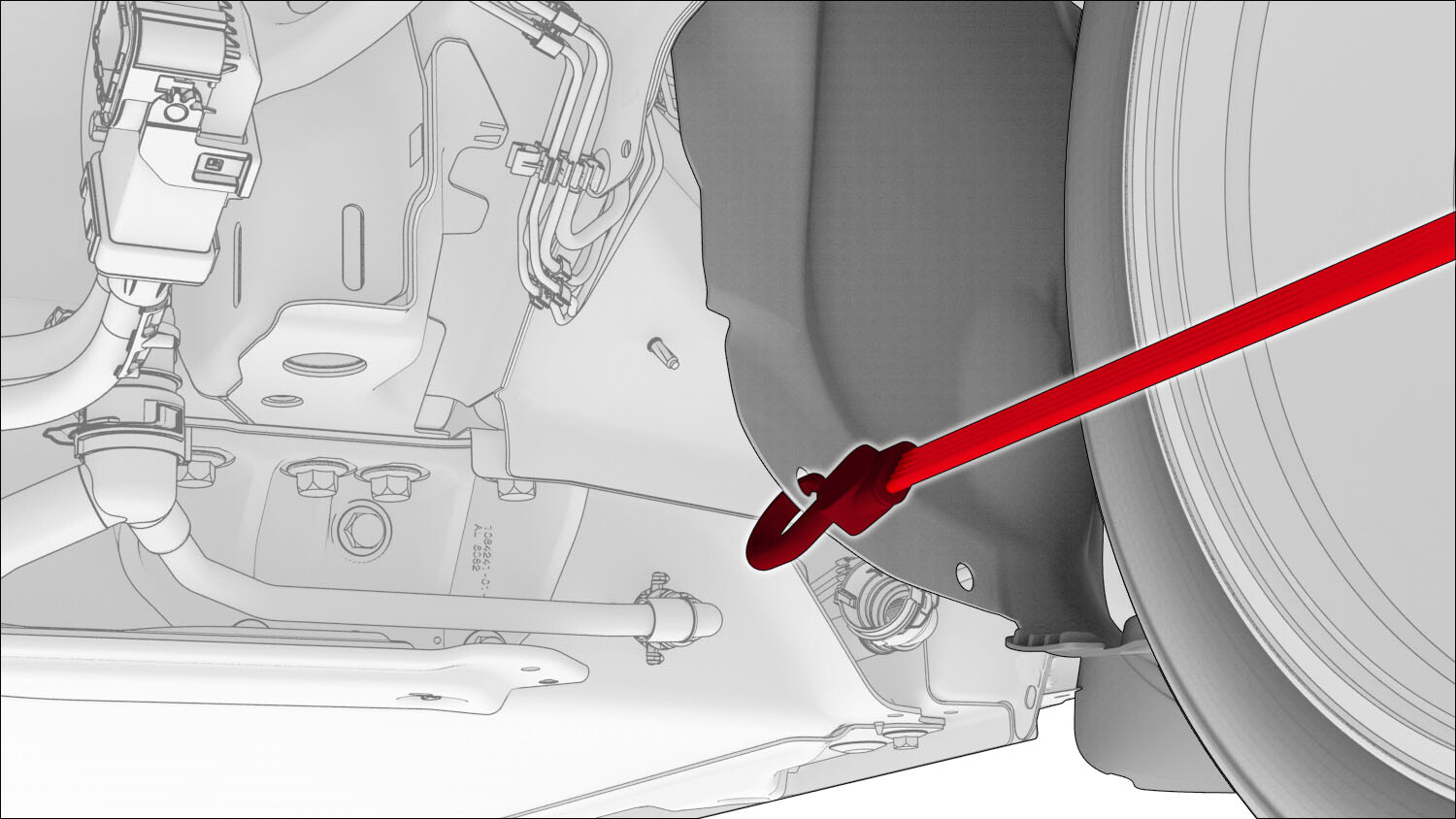 - 将弹力带从左右轮拱内衬上拆下。