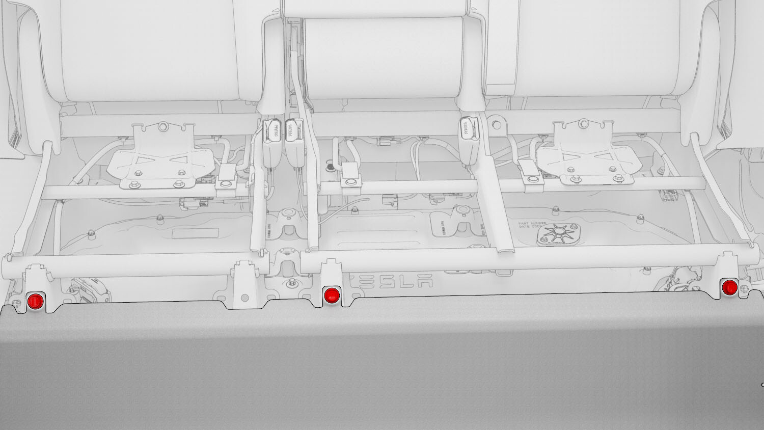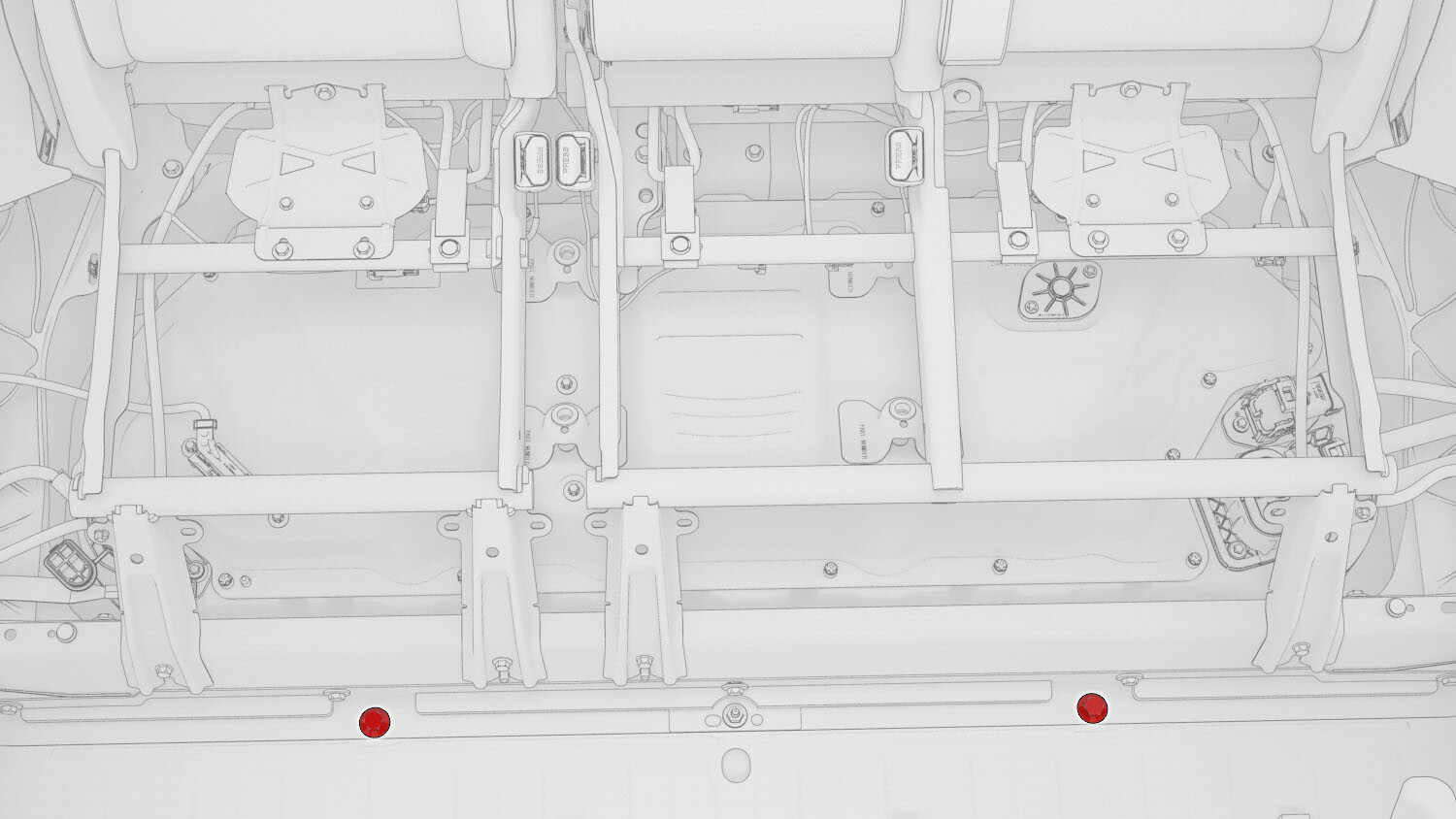 紧固高压电池内部左侧中间螺栓,然后将地毯折叠到原始位置。重复此步骤,完成车辆右侧相关操作。