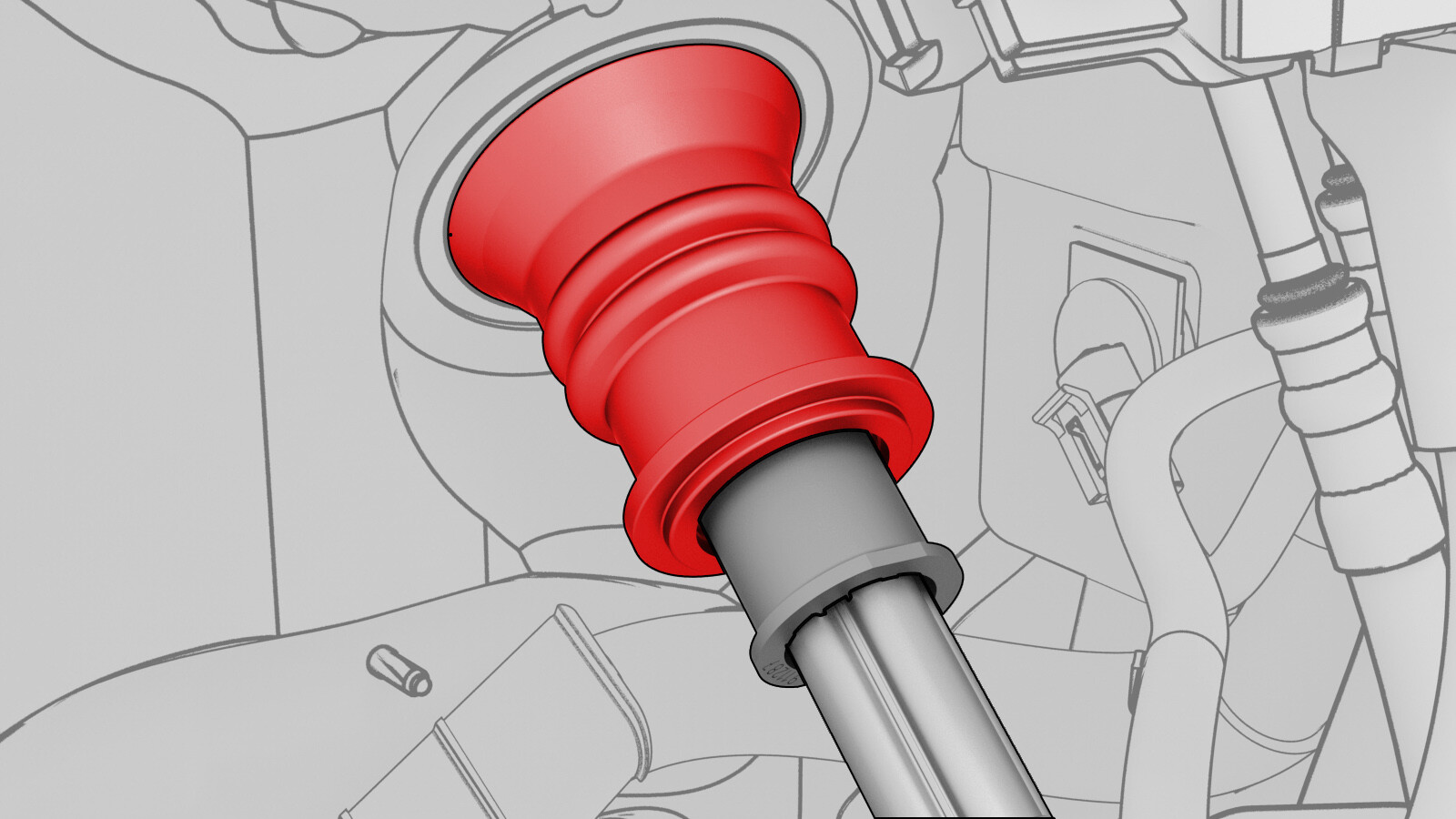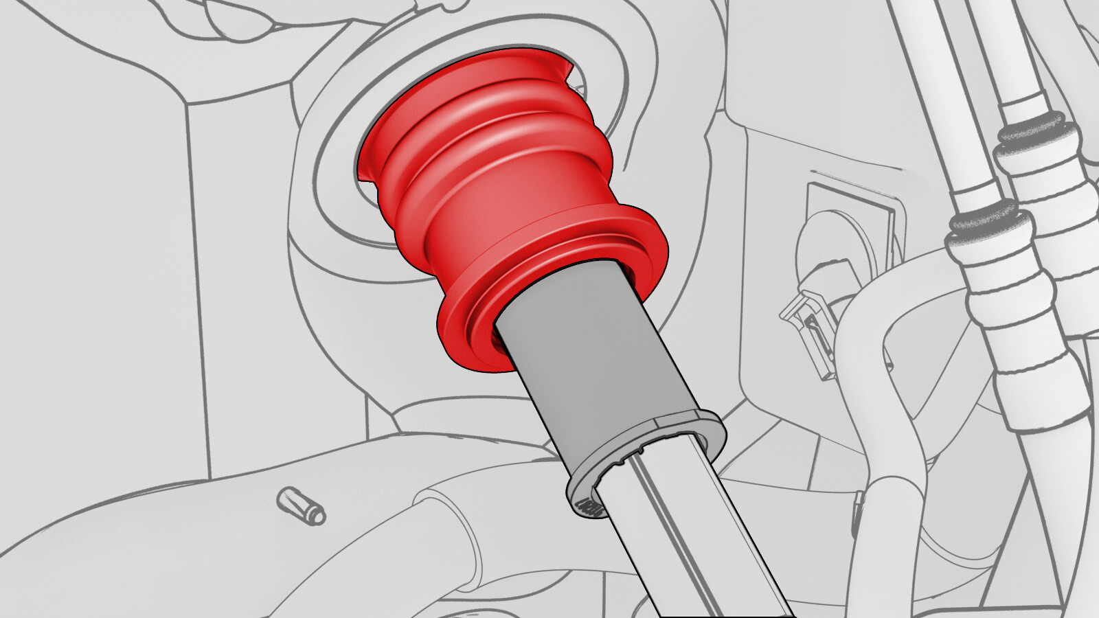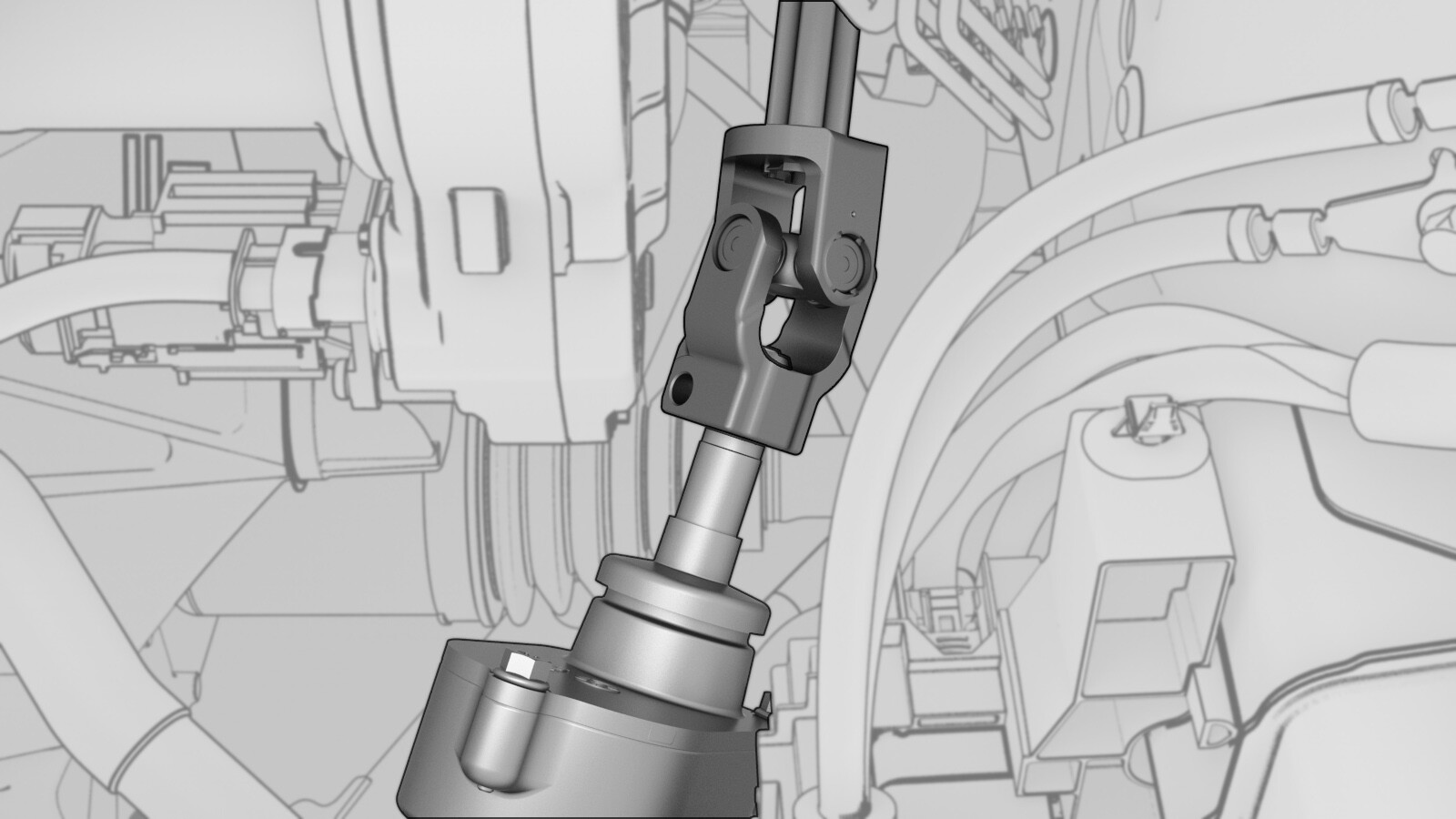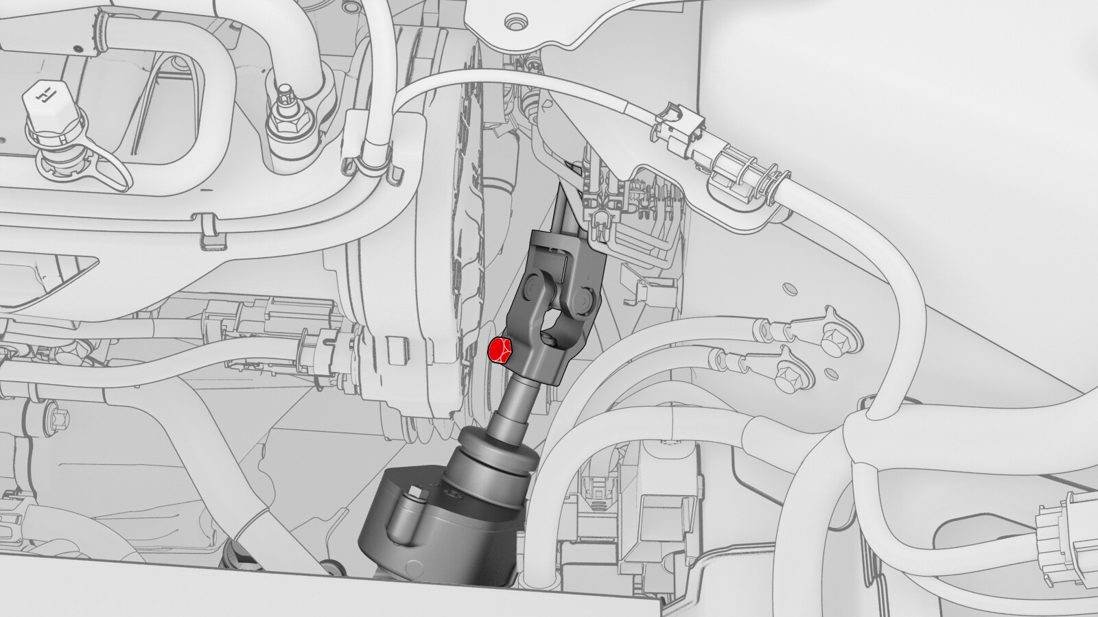 - 在协助下,将转向柱中间轴向下滑到转向机输入轴上,确保轴对齐并且完全就位。