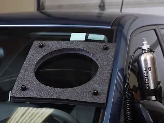- Align the scratch in the center of the splash guard, and then install the splash guard on the windshield.