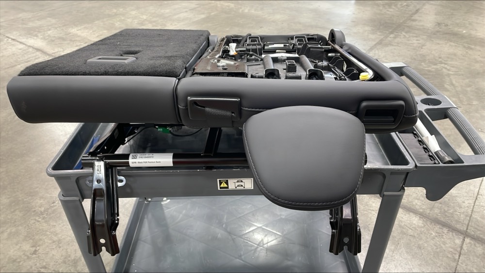 警告不要让座椅靠背承受任何额外的重量。否则可能会损坏座椅骨架的对齐锁片,从而导致以 60/40 比例分割的座椅靠背之间出现不平整。