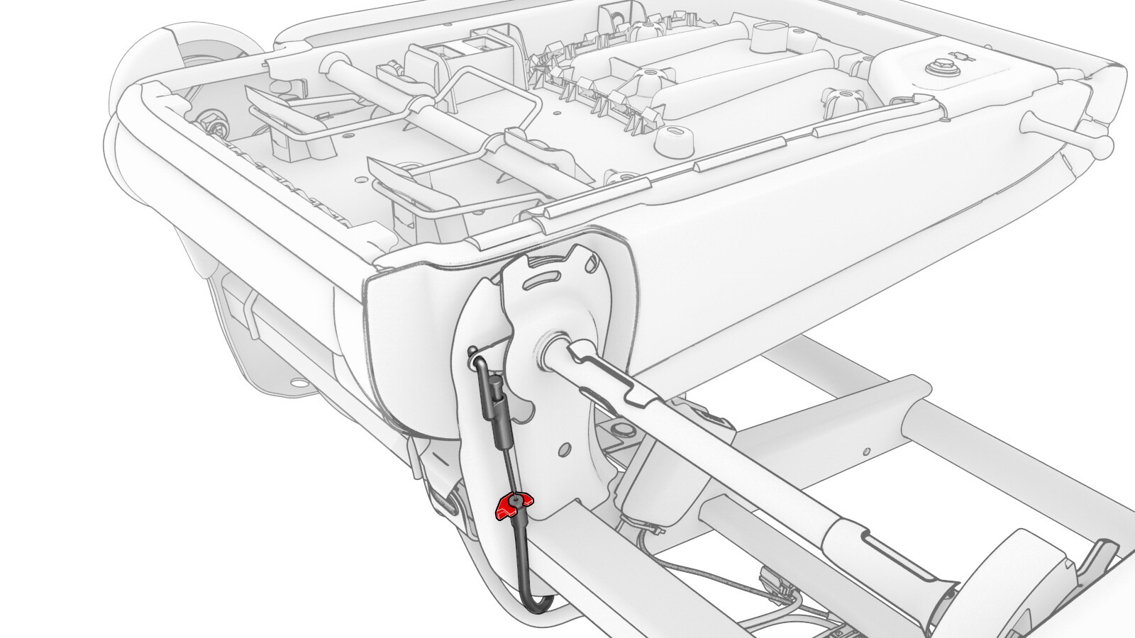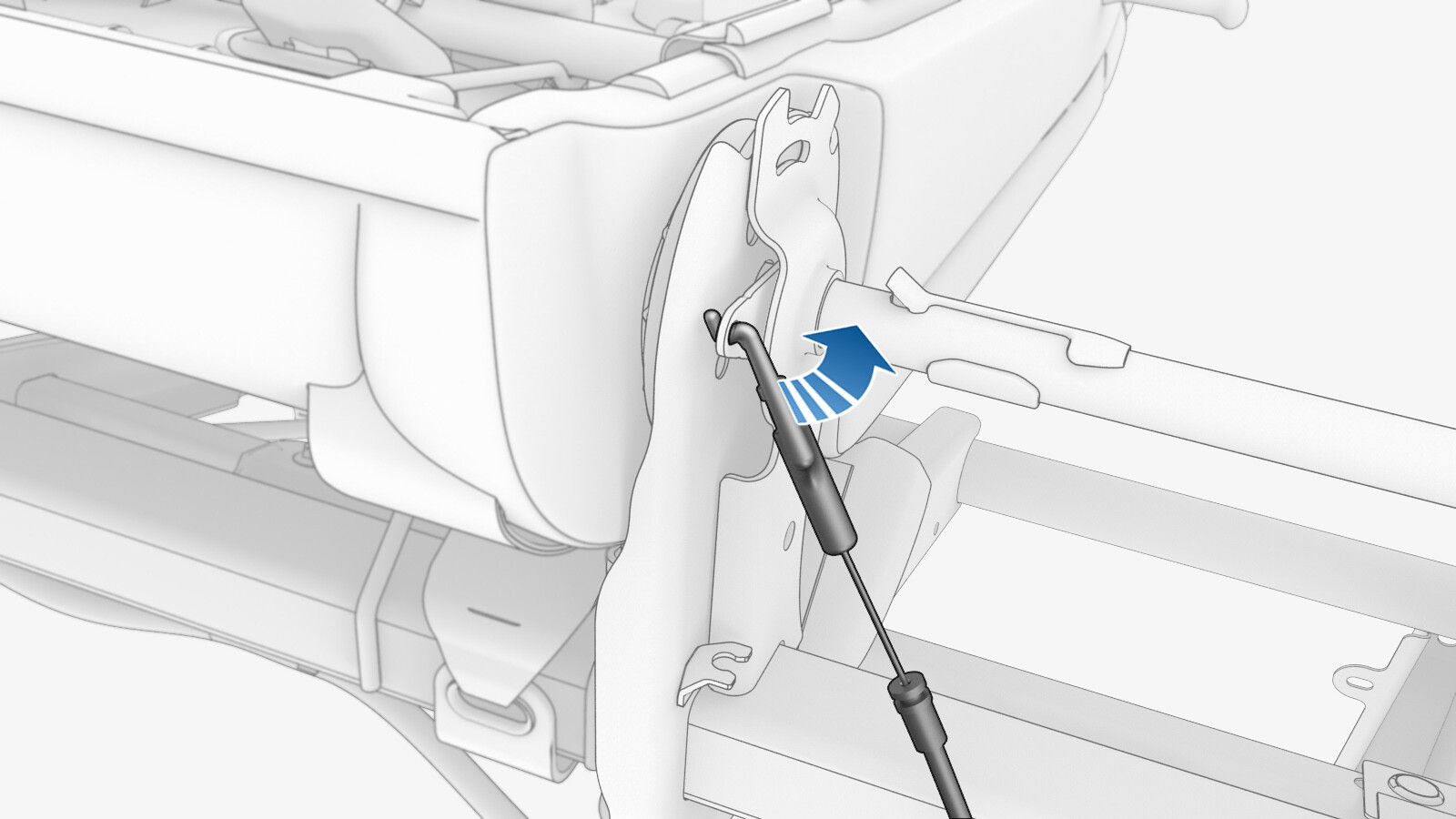 - 从 60 座椅框架夹子松开执行机构缆索,然后将缆索从座椅框架闩锁上提起使之分离。