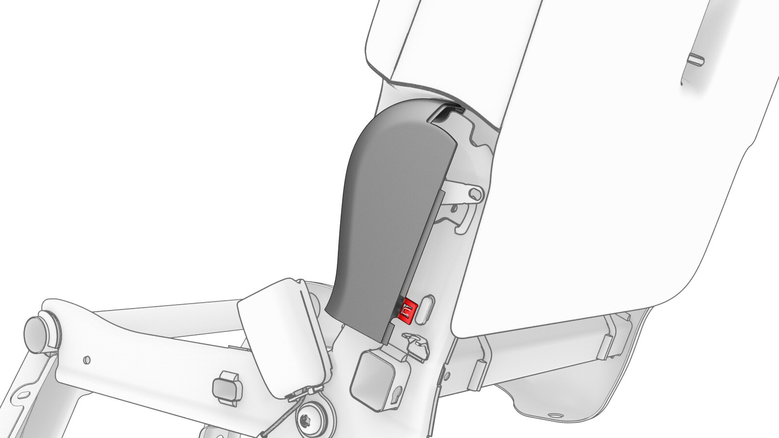 - 松开将第二排 RH 内侧 B 柱盖板固定在座椅上的夹子,然后向前拉动饰板,将其从座椅骨架上拆下。