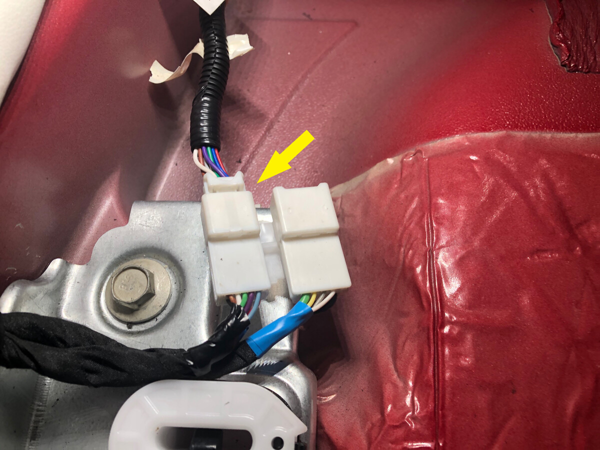 - 断开第三排 RH 倾角调节执行机构电气连接器。