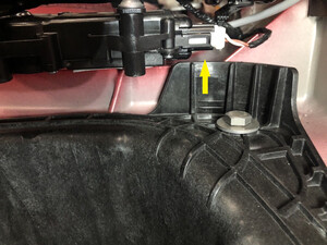 - 松开将 LH 行李箱支架固定到车辆的夹子和锁片,然后拆下饰板。对 RH 行李箱支架重复此步骤。