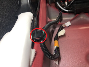 - 从车辆 LH 侧的 B 柱盖板内侧安装第三排座椅框架线束。