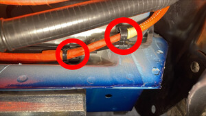 - 松开将高压电池至空调压缩机高压线束固定到车身侧面的夹子(8 个)。