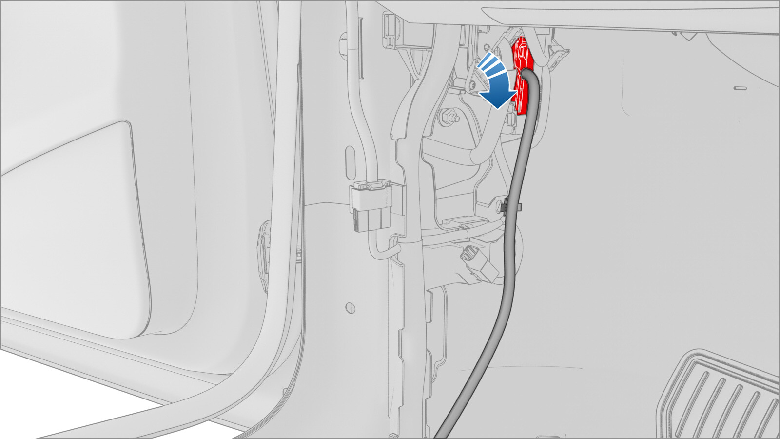 - Install the clips (x2) that attach the LH front seat harness to the LH footwell support bracket near the LH side of the LH footwell.