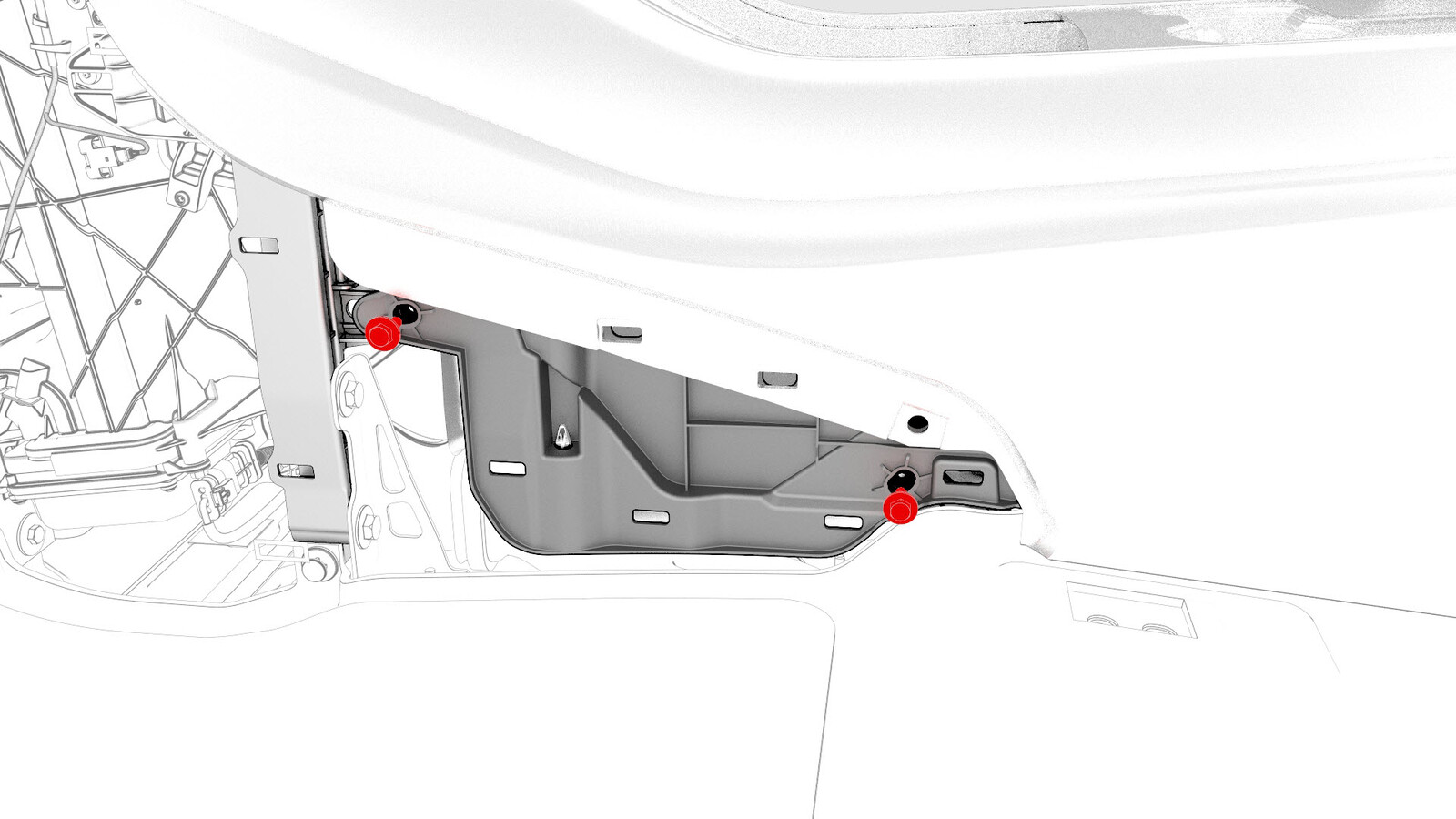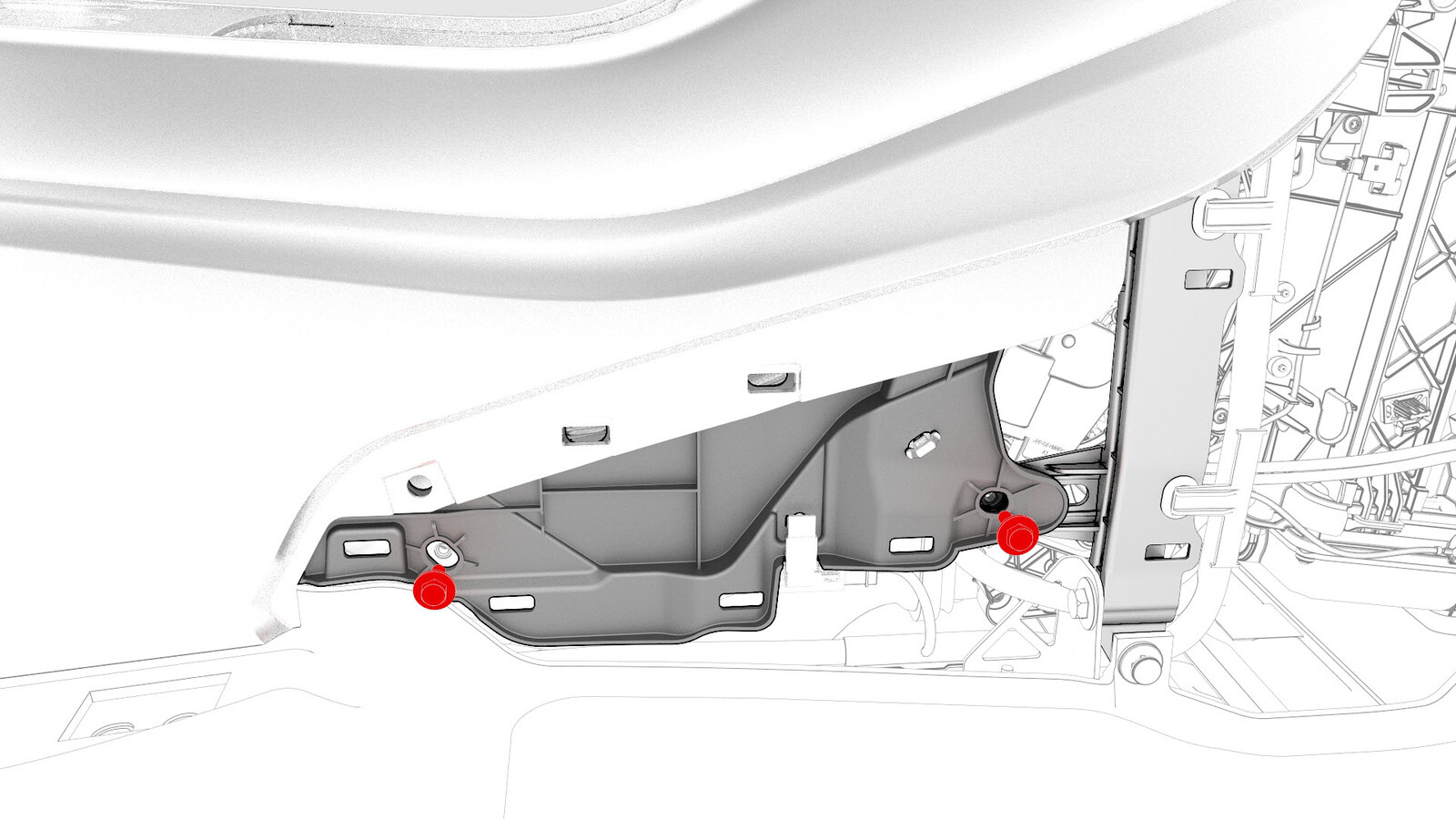 - Install the clips (x2) that attach the LH front carpet to the vehicle.