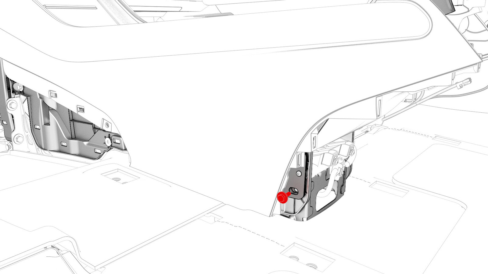 - Unfold the LH front carpet back into position, and then install the clip that attaches the carpet to the body near the front of the LH door opening.