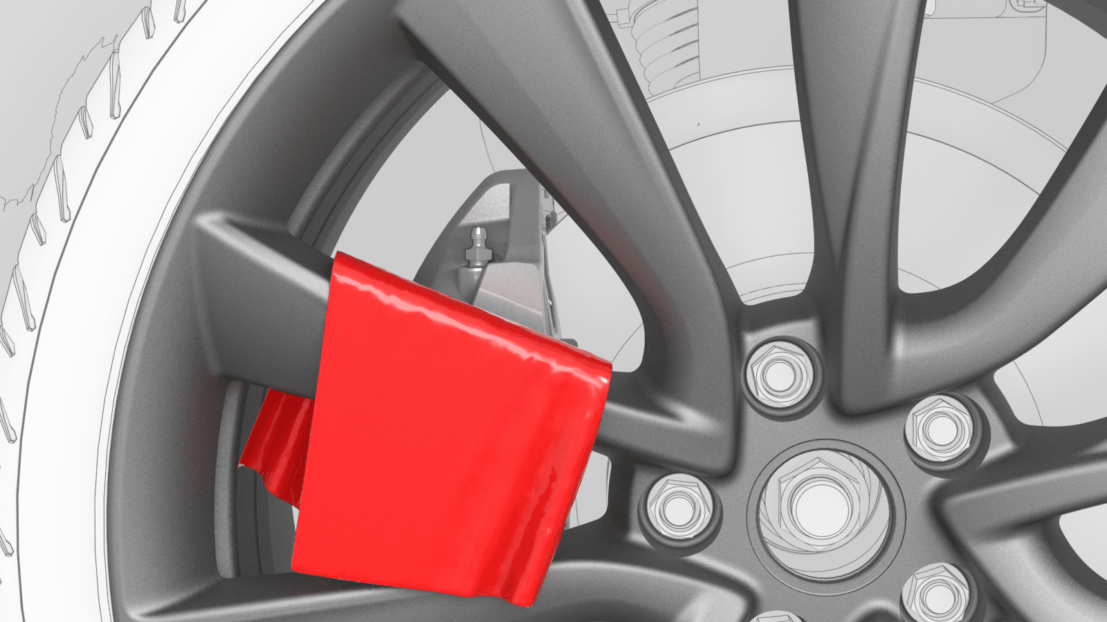 6. 在轮辐上放一块毛巾,以防制动液造成损坏。