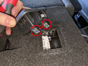 注2x bolts, T40, 22 Nm, Once fasteners are removed slide pivot clamp towards the center of center seatback and pull each outwards to remove