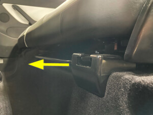 注Pull back on lower portion of the headrest guide to release tab while also applying upward force to remove headrest guides