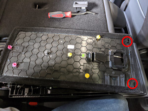 注5x patch bolts, 11mm, 37 Nm, Install new patch bolts, Bottom seat bolts located behind main carpet, Torque in sequence; Outboard front -> Both inboard rear -> Outboard rear -> Inboard front