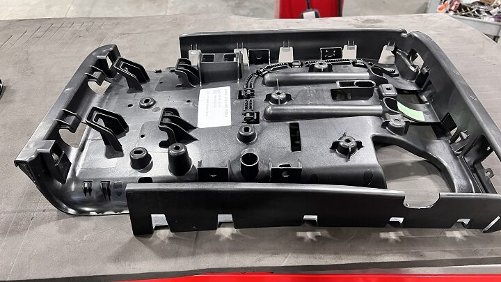 注7 个卡子;将 60 百分比座椅脚踢盖板左侧向上撬动以松开卡子;对右侧重复操作,以完全拆下脚踢