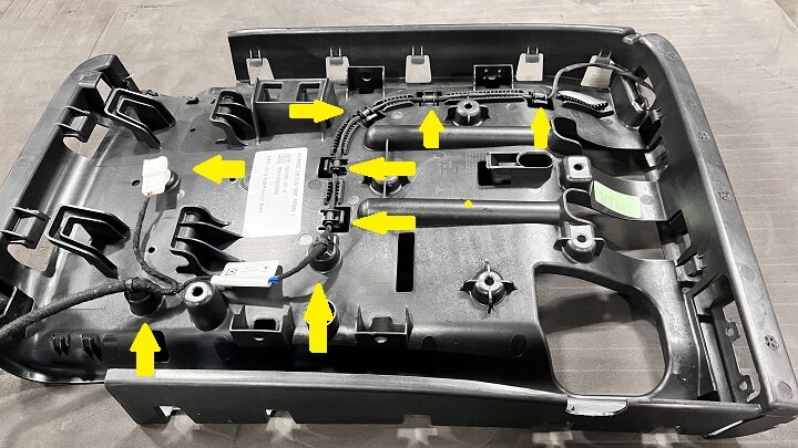 将第二排 60 百分比座椅线束连接器和卡子从座椅框架上松开