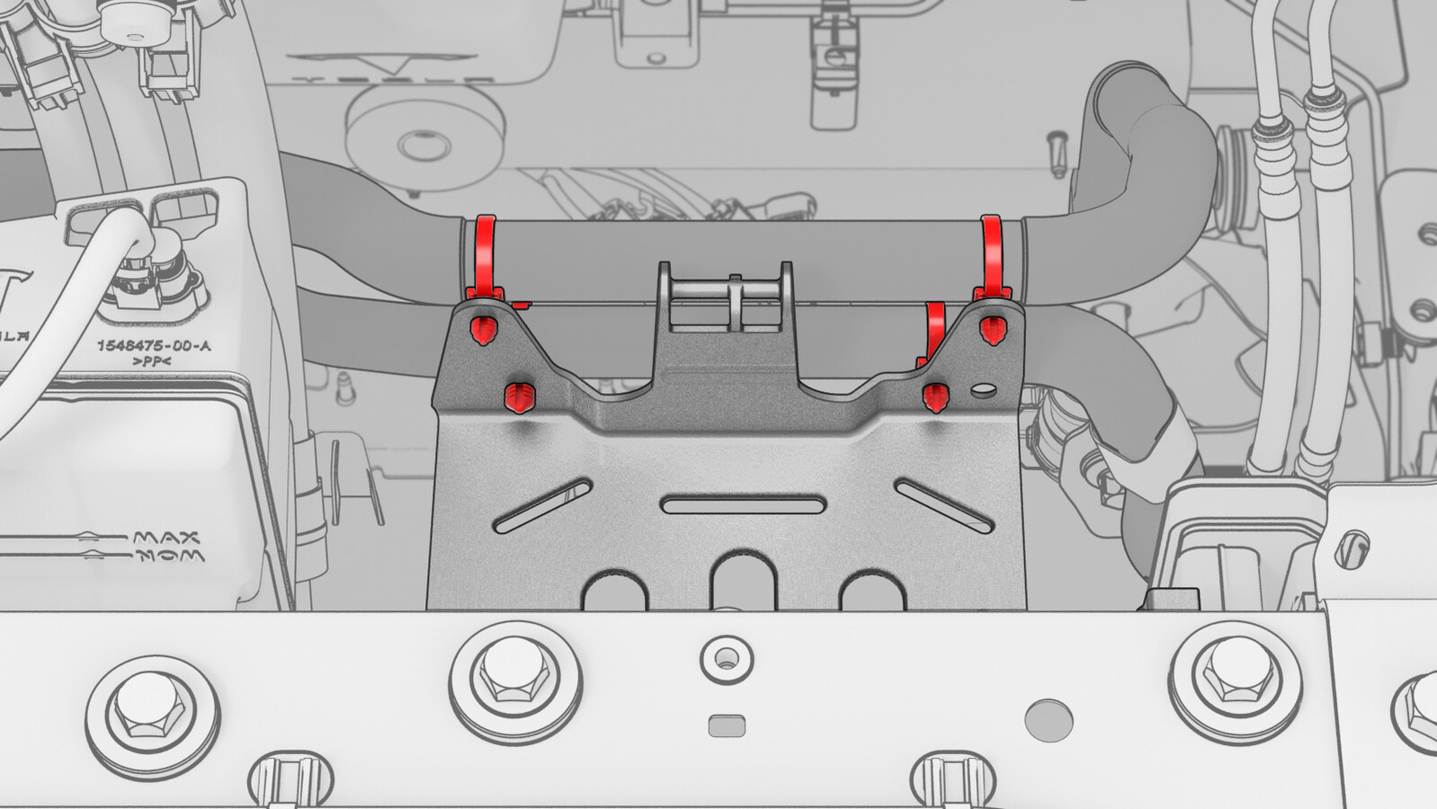 - 安装将冷却液软管固定到空调压缩机支架的夹子 (x4)。