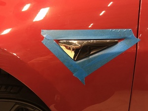 - 揭下粘贴在左前侧转向灯周围左前翼子板上的保护胶带。