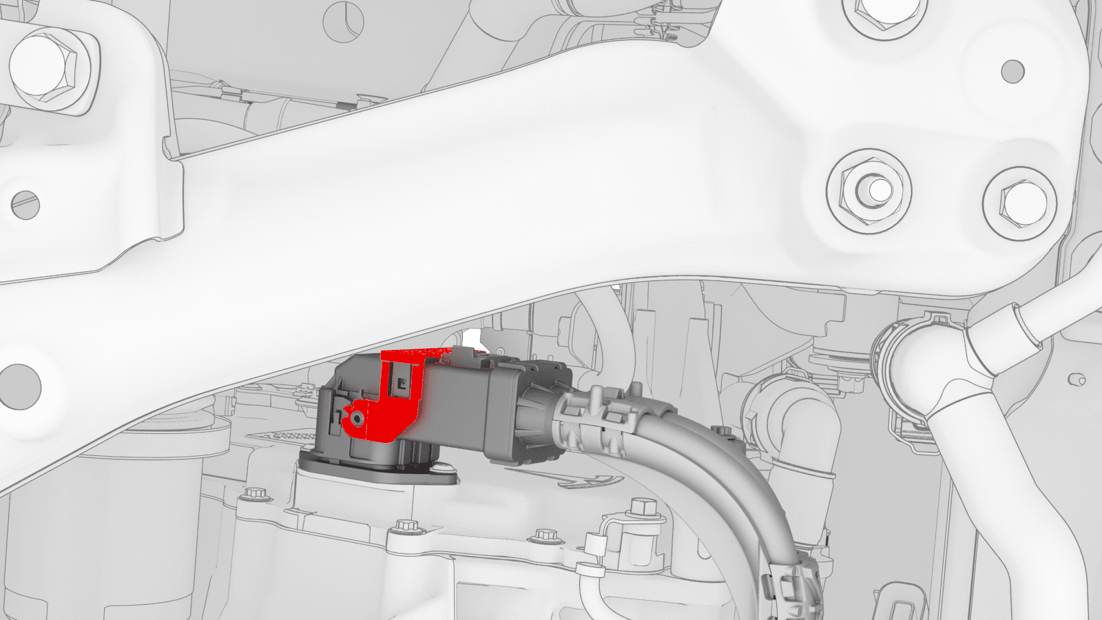 - 滑动红色释放锁片以解锁前驱动单元高压线束连接器。