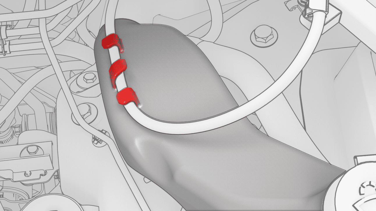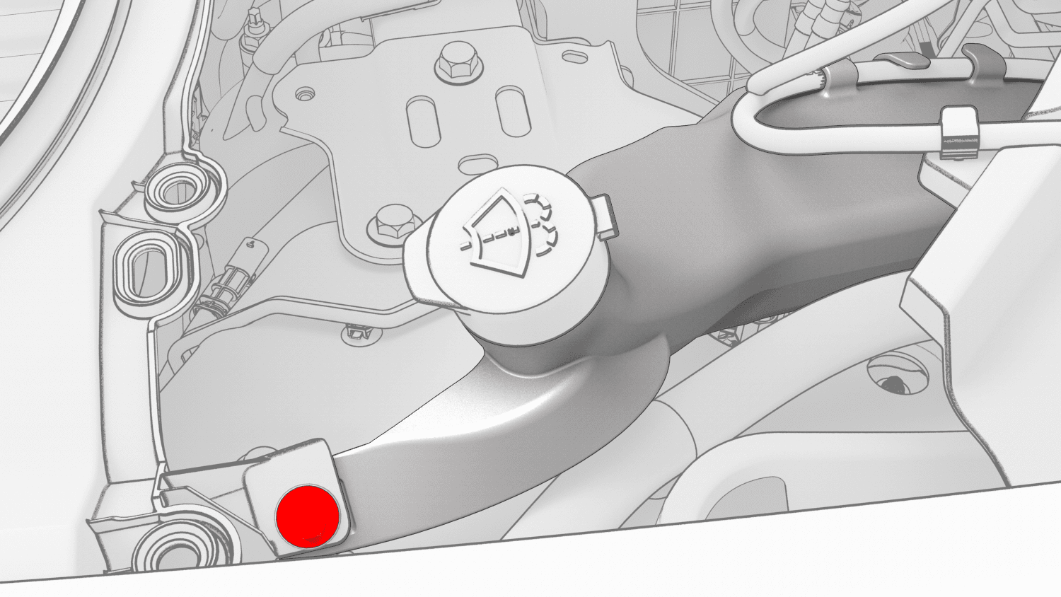 - 使用夹子撬具松开用于固定挡风玻璃清洗器储液罐加注口的推拉式夹。