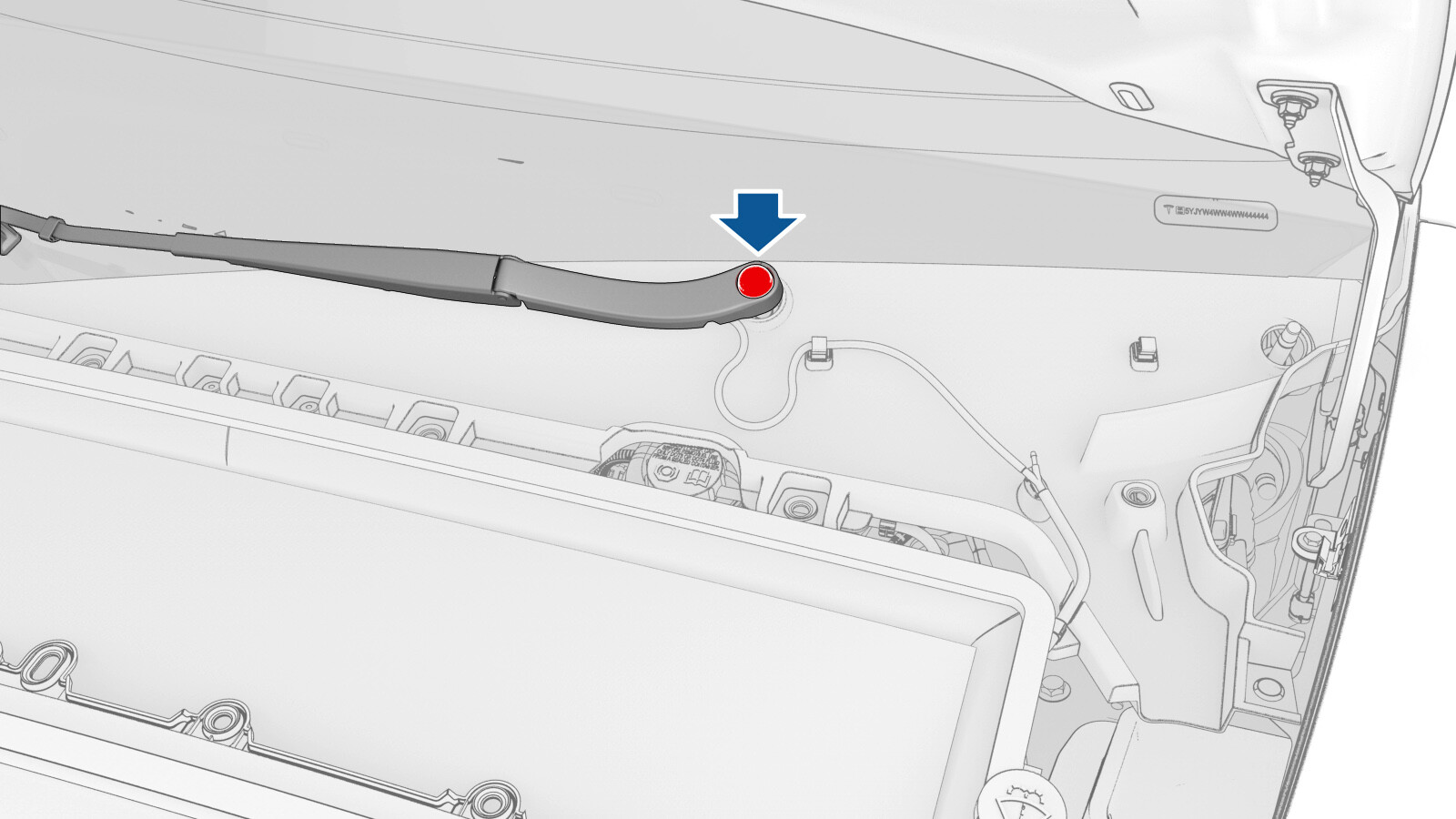 - 从车上拆下 RH 雨刮器臂和软管总成。