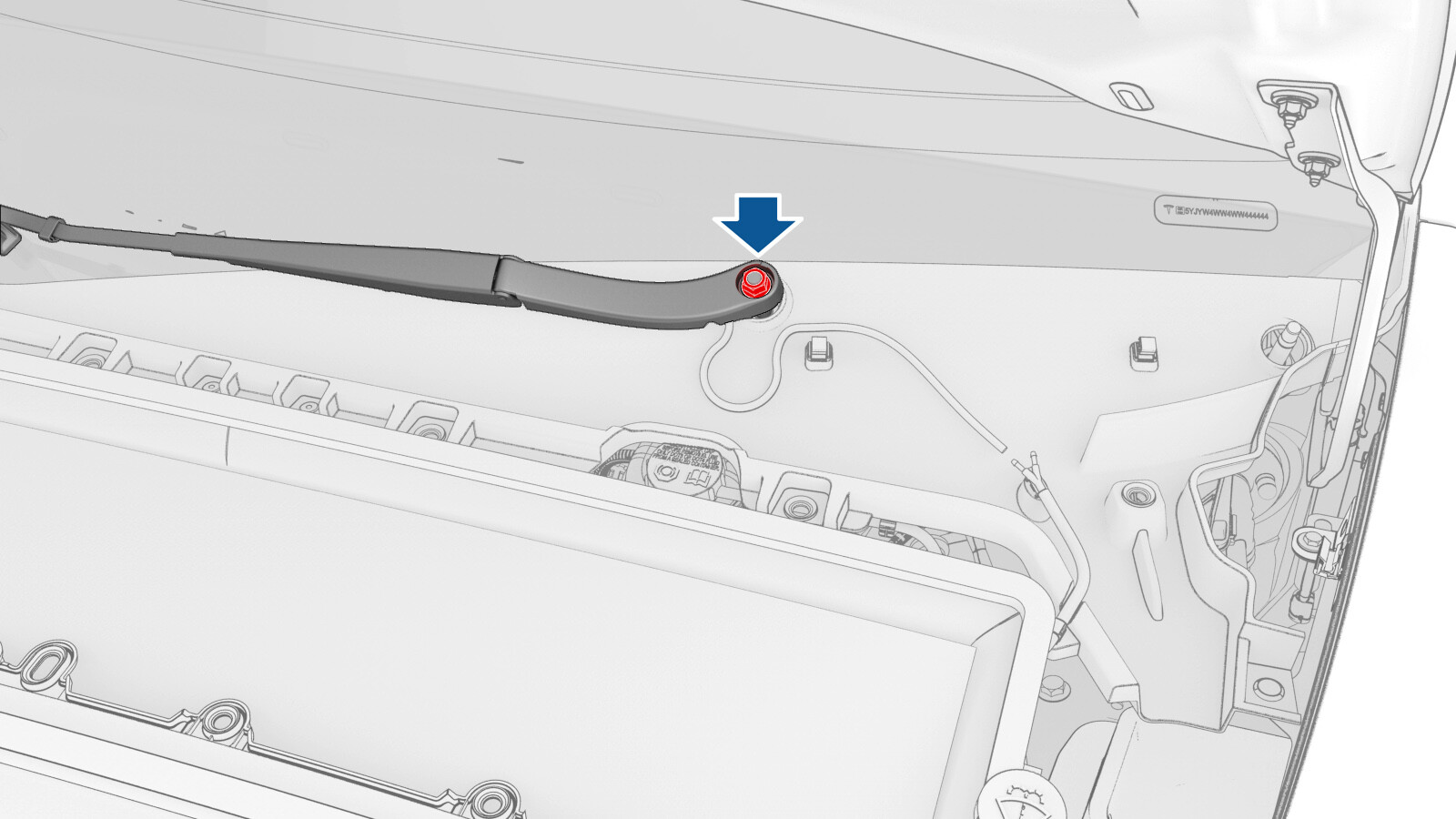| 将右侧雨刮器臂固定到雨刮器电机总成的螺母 |