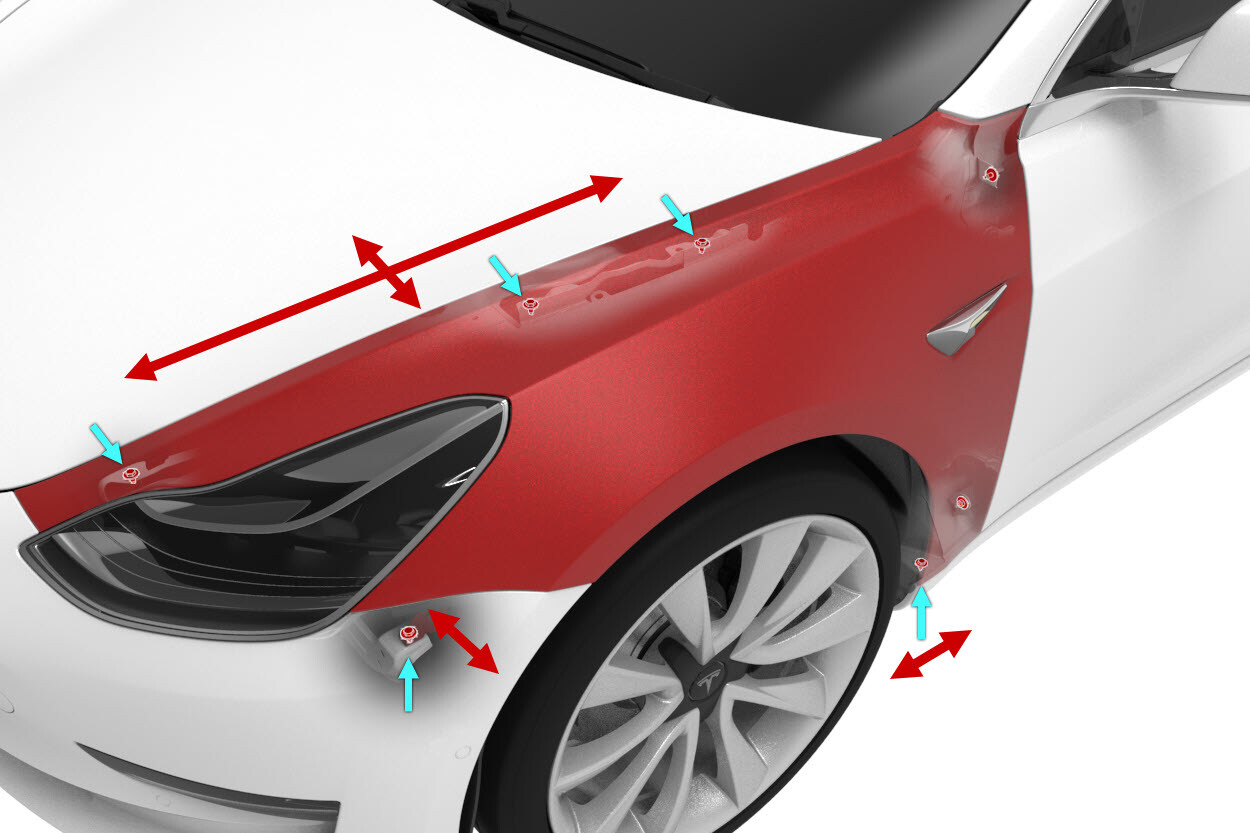 - 重复此过程,直至翼子板装配间隙和齐平度处于规格范围内。