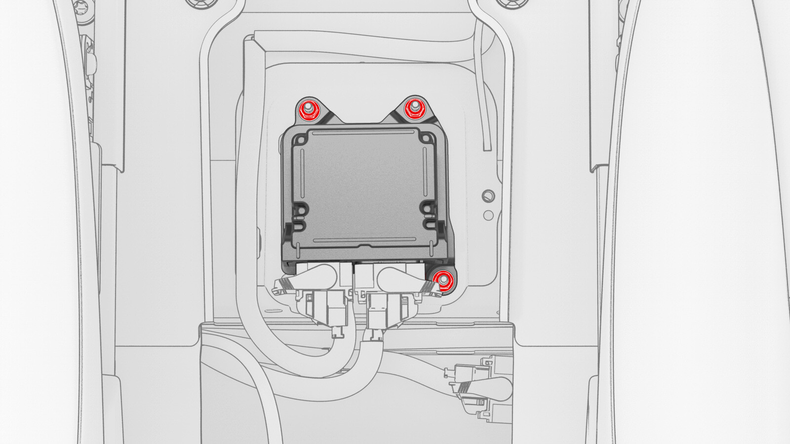 将约束控制模块放置在车辆上,然后安装新的螺母(3 个),将模块固定到车辆上。