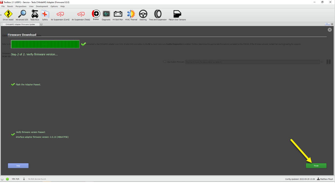 - 更新完成后,将新固件版本记录到服务工单中,然后点击Finish。