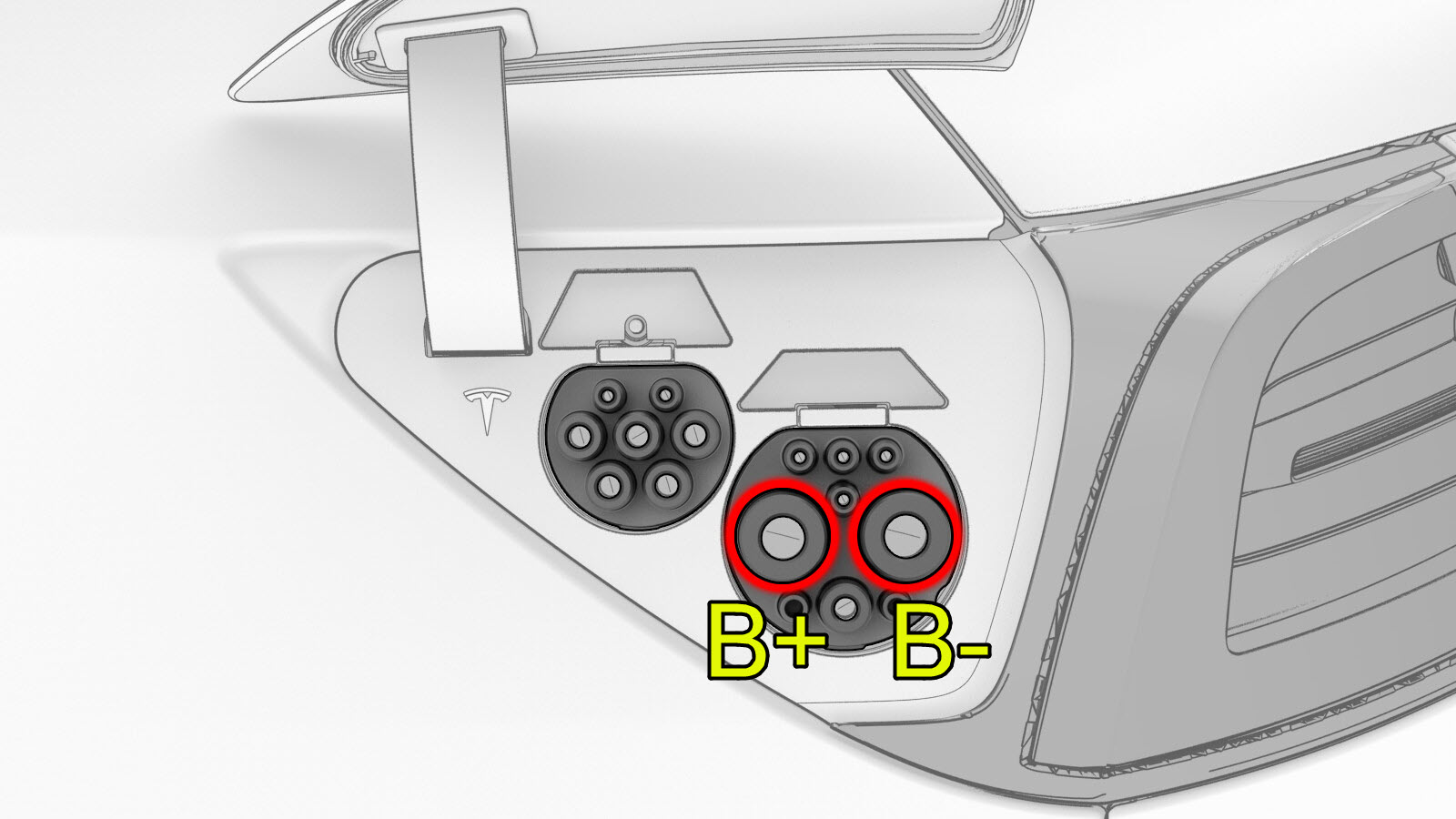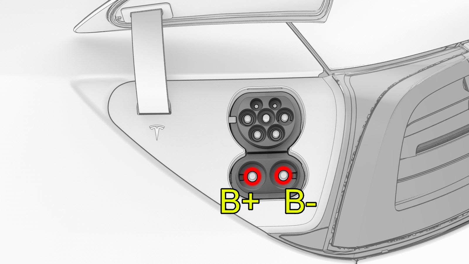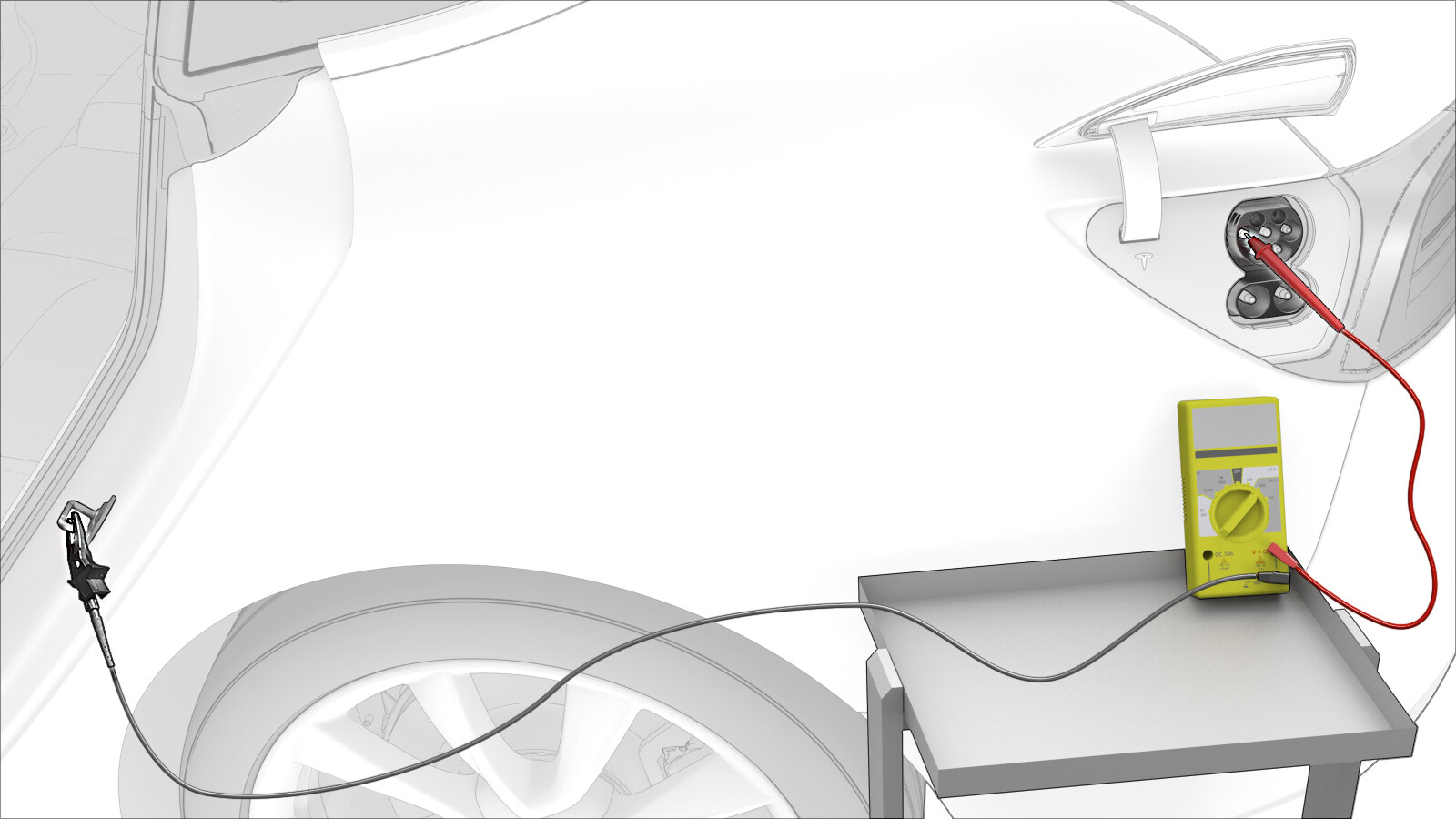 使用万用表检查充电接口直流端子 B+ 和接地以及 B- 和接地处的电压。