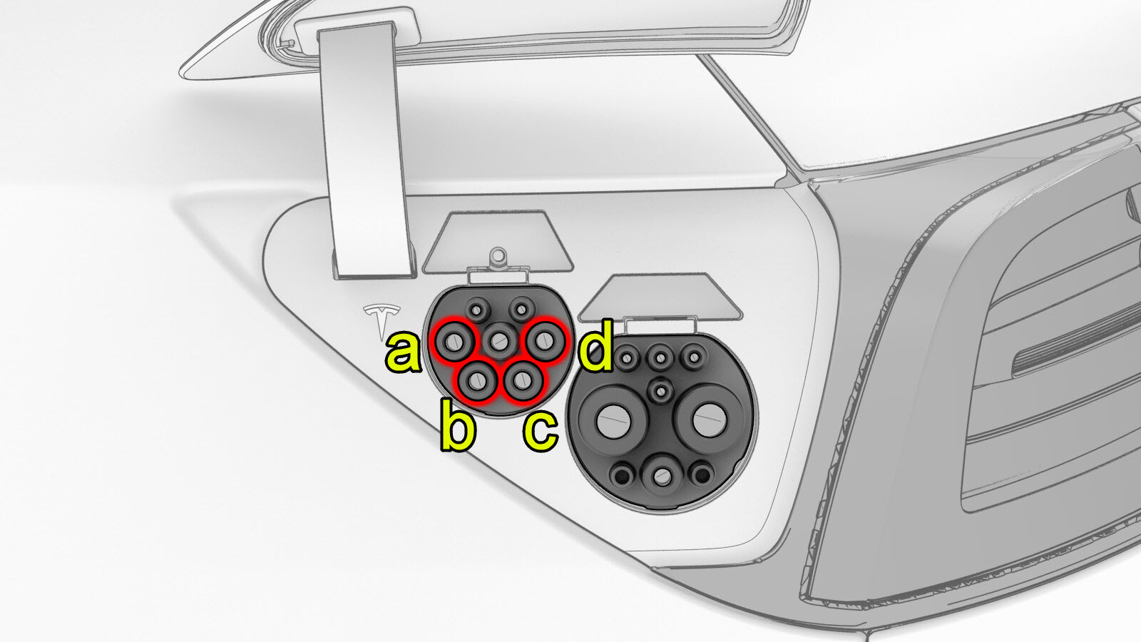 使用万用表检查充电接口交流连接器下部 4 个端子和接地处的电压。