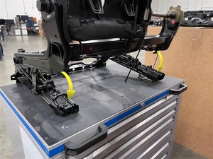 attach the LH 2nd row seat podium to the seat tracks.