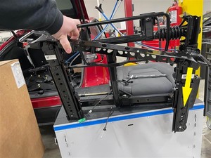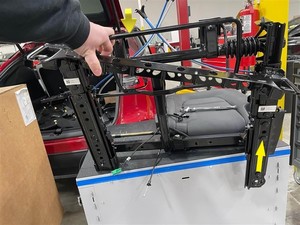 - Starting at the rear of the seat, position the LH 2nd row seat pan onto the seat frame.