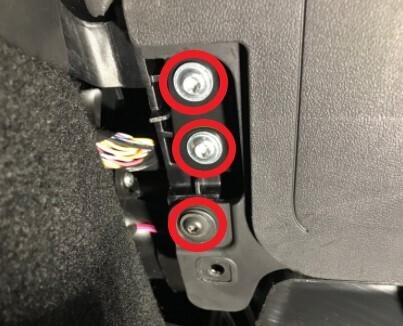 注3x connectors, New puddle lamp harness routing prevent blocking movement of pawls, Make sure harness is routed properly above passenger footwell air duct before connecting