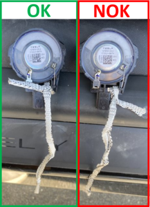 - 采用拆卸时记下的同一布线方式,将系带固定到 LH 前车门高频扬声器上。