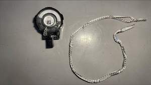 将 LH 前车门高频扬声器放置到高频扬声器支架上,将系带排布到支架中,然后固定将高频扬声器固定到支架的夹子 (x3)。