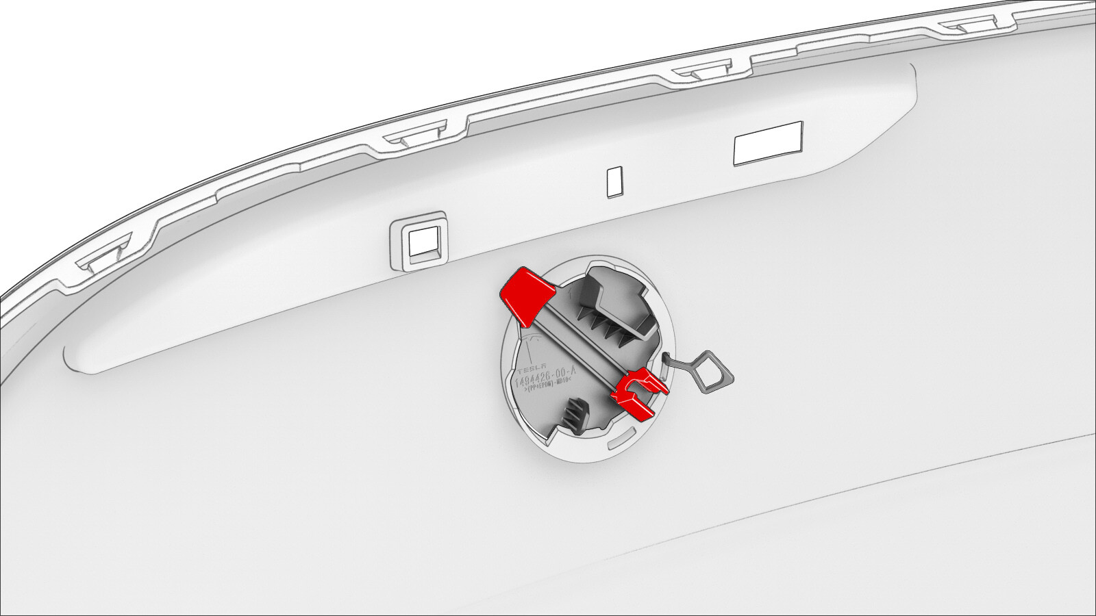 - 松开将 LH 反光板固定到下部后饰板的夹子和锁片,然后向外滑动反光板将其从饰板拆下。对车辆 RH 侧反光板重复此步骤。