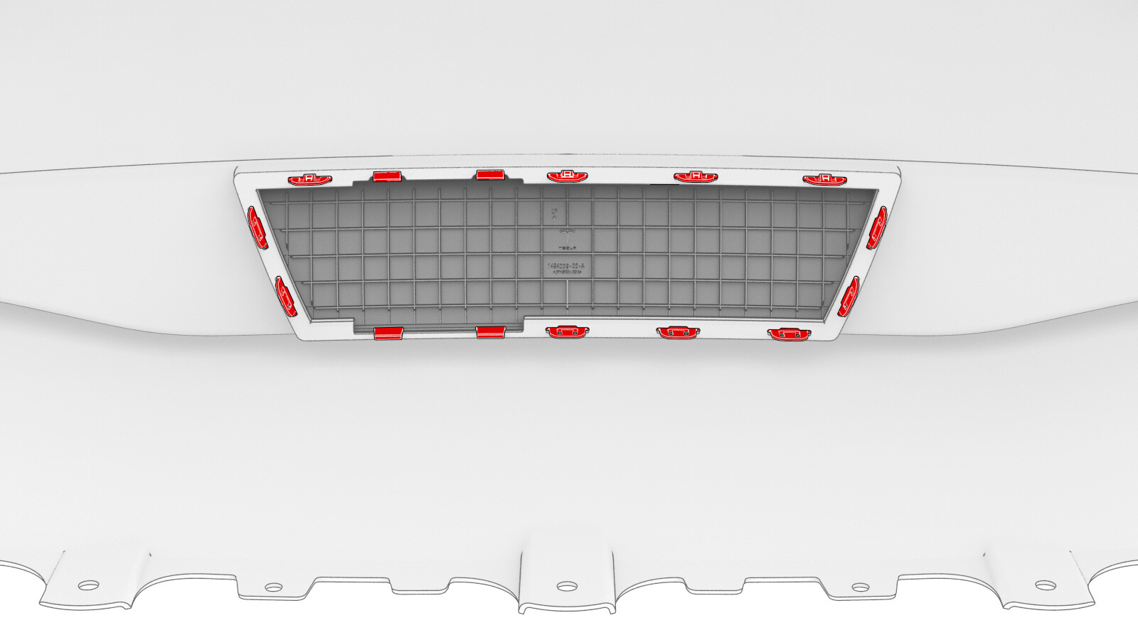 - 松开将牵引钩盖板固定到下部后饰板的夹子 (x15),然后从饰板上拆下盖板。
